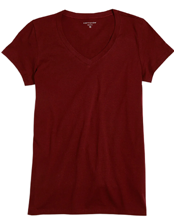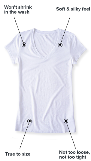 • A short-sleeve, fitted V-neck tee with an elongated body that reached the hips and looks great both tucked in or left out.