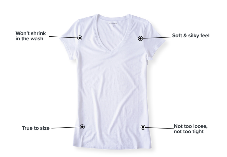 • Dubbed “the holy grail of all V-necks” by the New York Times itself, the Marcy is an all-time bestseller for a reason. Our dressiest tee, it’s lightweight and fitted to skim your curves without clinging too tightly, making it the ideal layering tee, and sophisticated for professional and casual settings alike. It looks great under blazers, cardigans or jackets.
