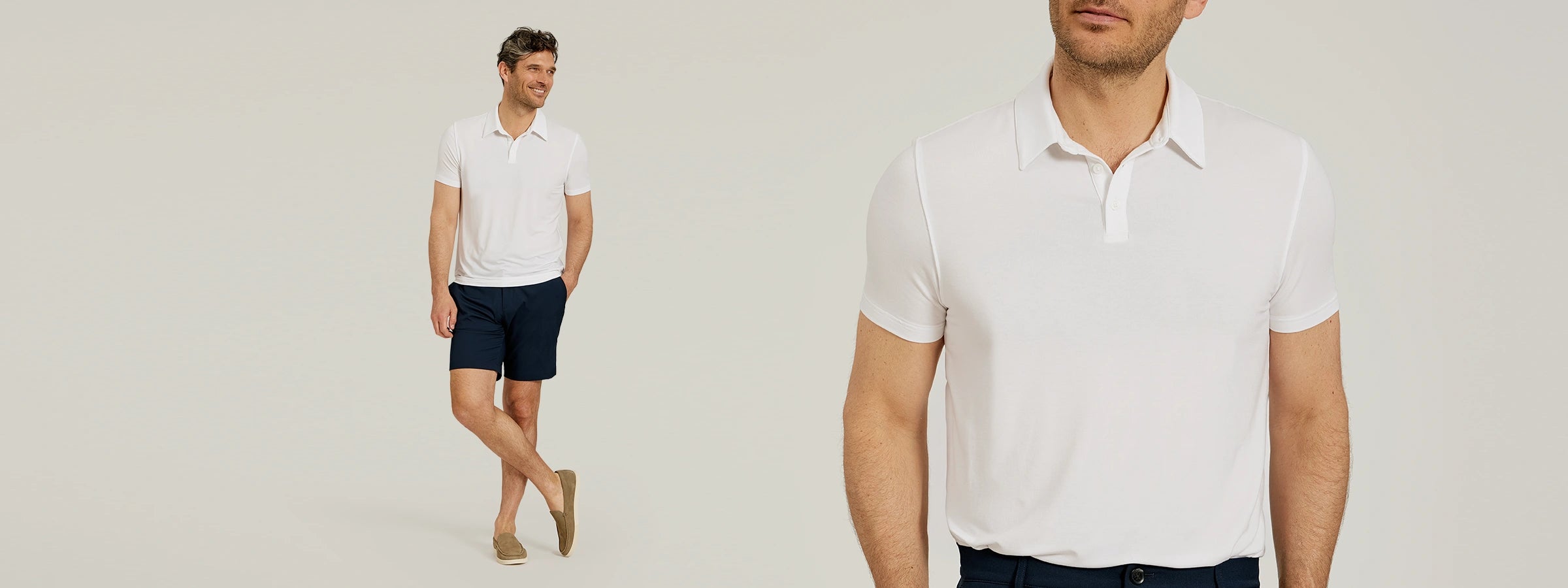 - Whether it’s a day at the office, a round of golf, or a dinner out, the Luxe Performance Polo is your go-to for dressed-up casual style with effortless sophistication. Designed for versatility, it pairs seamlessly with our Tech Pants or Tech Shorts for a refined look, with denim or our 5-pocket travel pants for laid-back vibe, and with chinos for an elevated yet relaxed feel—taking you from desk to dinner with ease.