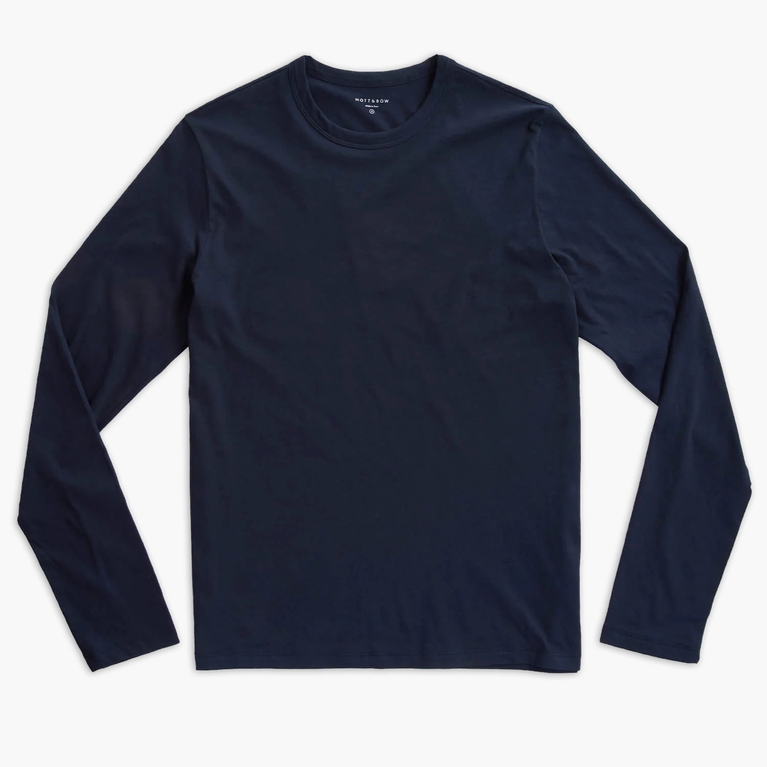 - Long-sleeved, crew neck tee with a just-right fit that’s neither too tight nor too loose.