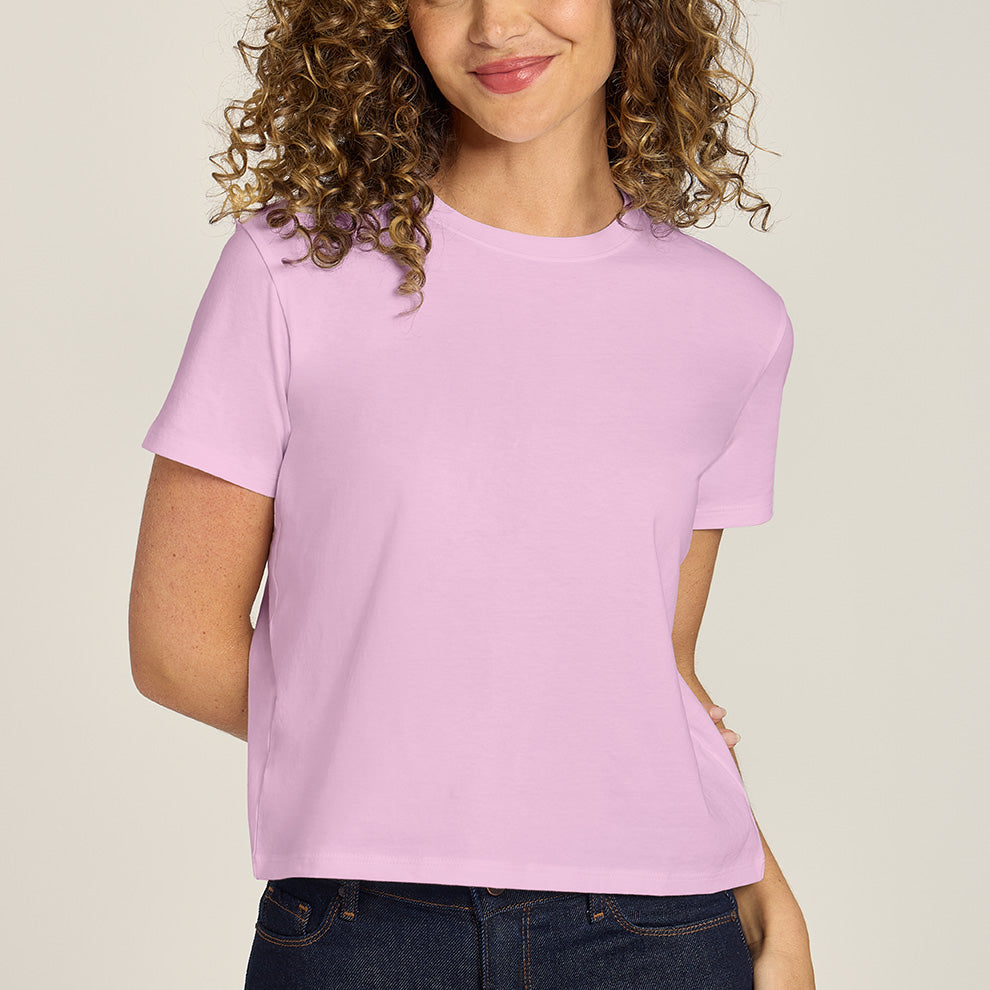 Women wearing Rose Pink Everyday Cotton Crew Tee