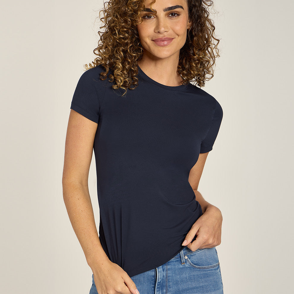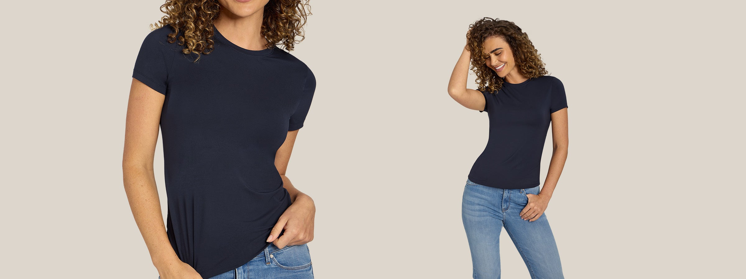 - Discover our most dressy and fitted silhouette. Made from a luxurious fabric blend that feels like a soft, cool whisper against the skin, the Second Skin Crew Tee drapes close to the body and flatters it effortlessly, creating that poised, put-together look with zero effort.