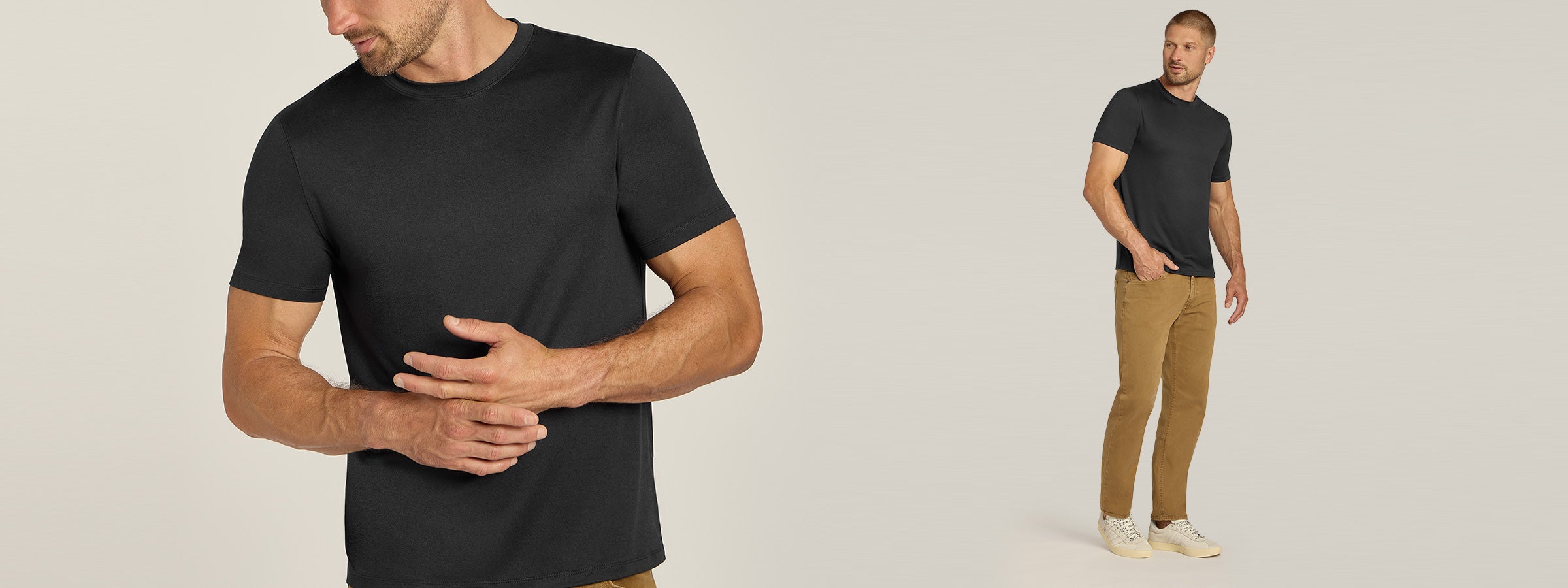 • Short sleeved crew neck tee with a just-right fit that is neither too tight nor too loose.