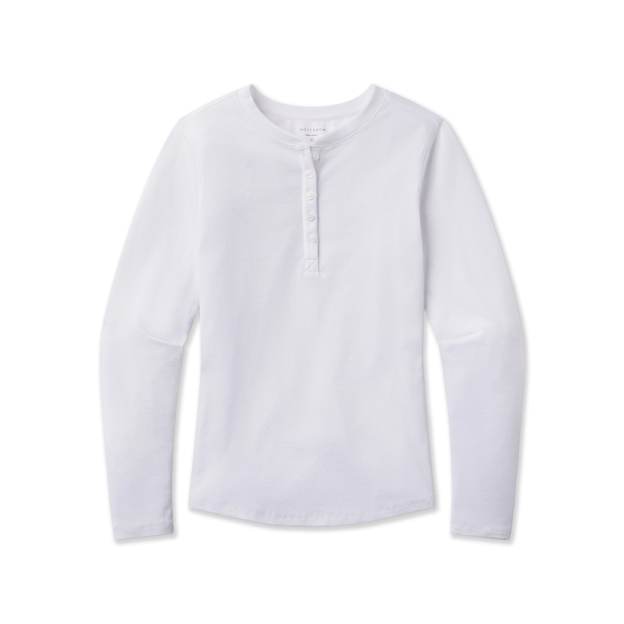 - Long-sleeved tee with a curved hem that’s longer at the front and back, with slightly shorter sides, and a 1x1 rib neck trim paired with a 3/4” wide placket and five tonal buttons.