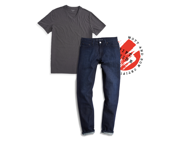 Our outfit sets are completely customizable. Choose the style, fit and wash of the jeans, and the color and neckline of the tees.