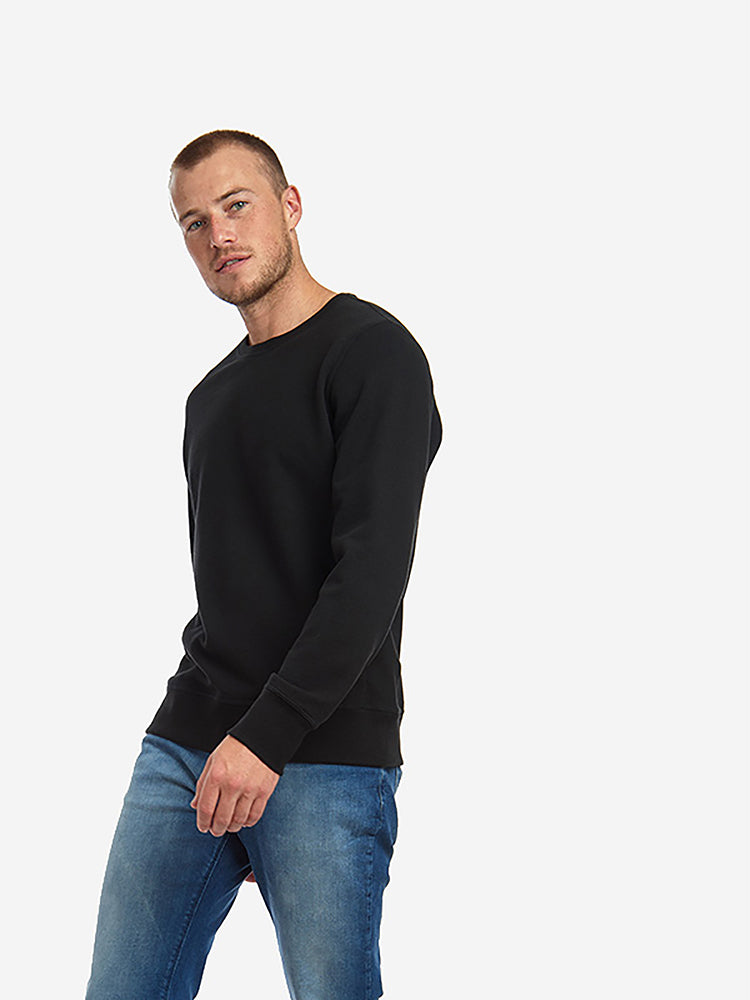 - Classic crewneck fit with rib trims at the neck cuff and hem