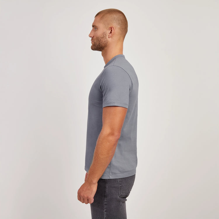Men wearing Gray Blue Classic Crew Driggs Tee