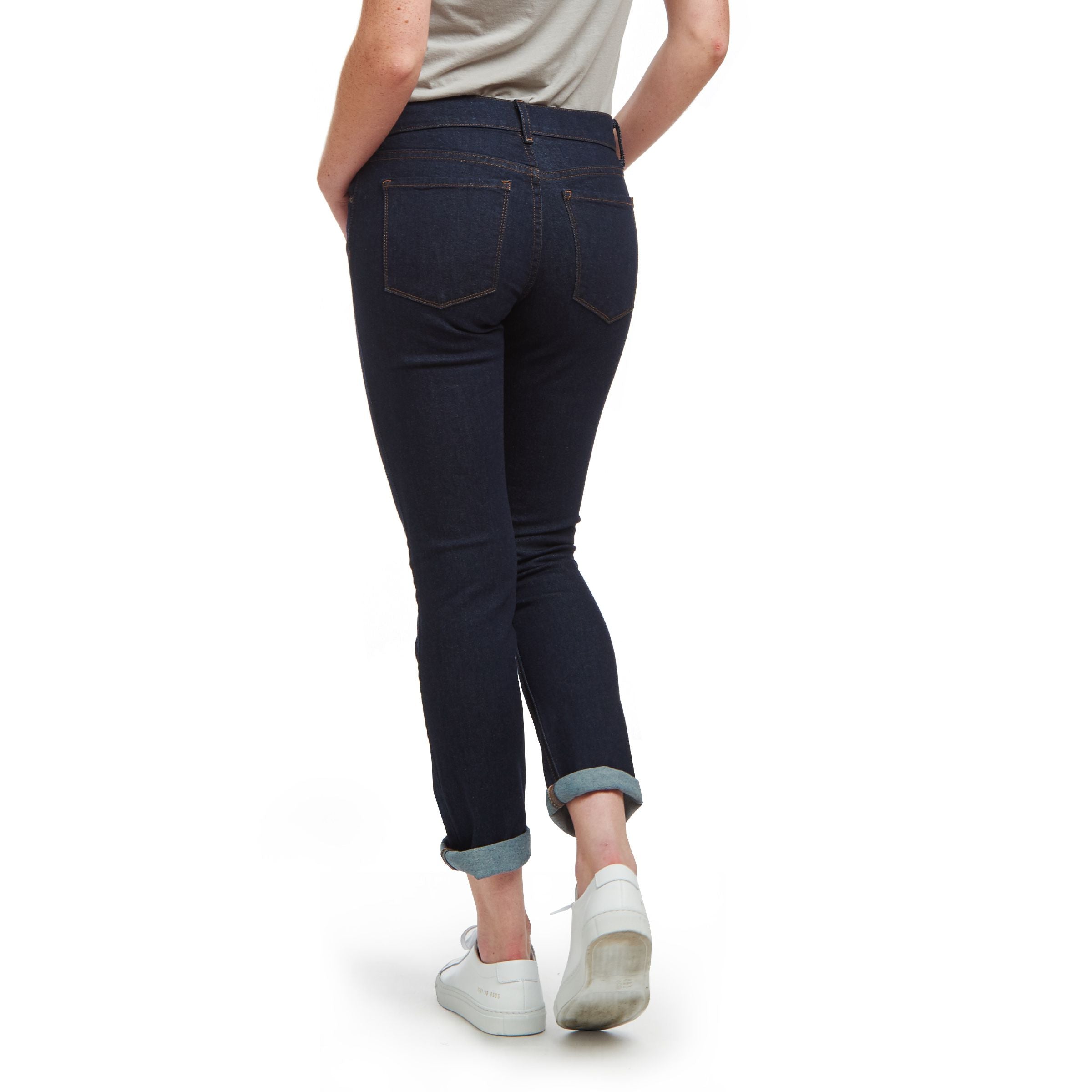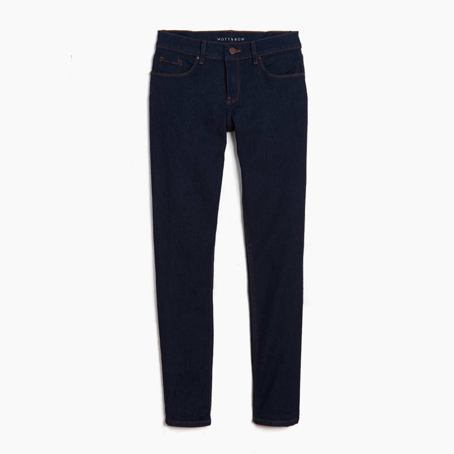 • A straight-legged style that’s straighter through the waist and hips, and slimmer through the legs with a lower mid-rise (front rise of 8.75").