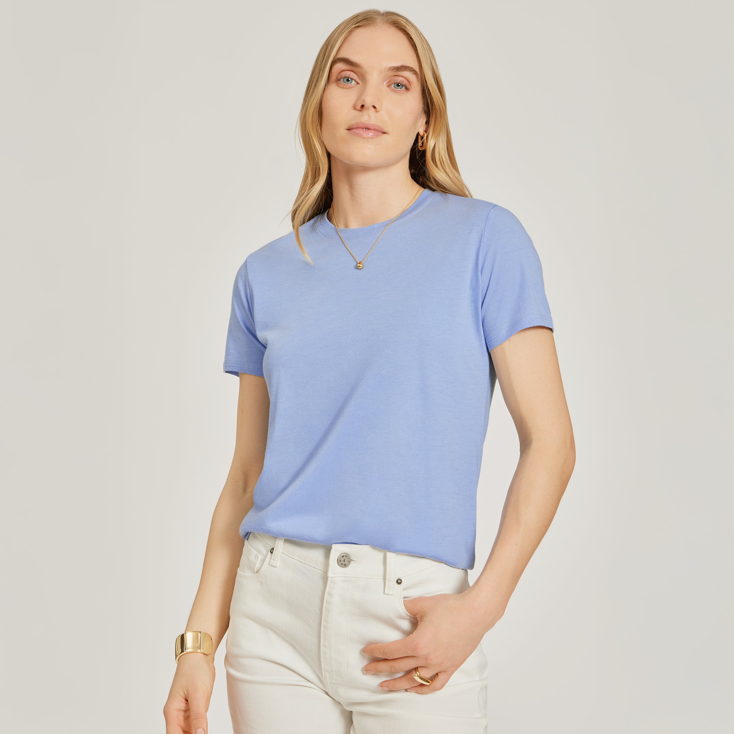 - Inspired by the Fitted Marcy, this version adds a little breathing room, making it the easiest tee to throw on and look put together in.
