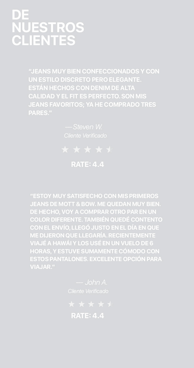 Nuestro estilo más popular, tiene un fit slim que se ajusta a la cadera, haciéndose un poco más estrecho en el dobladillo, creando una silueta alargada y halagadora para la mayoría de los tipos de cuerpo.