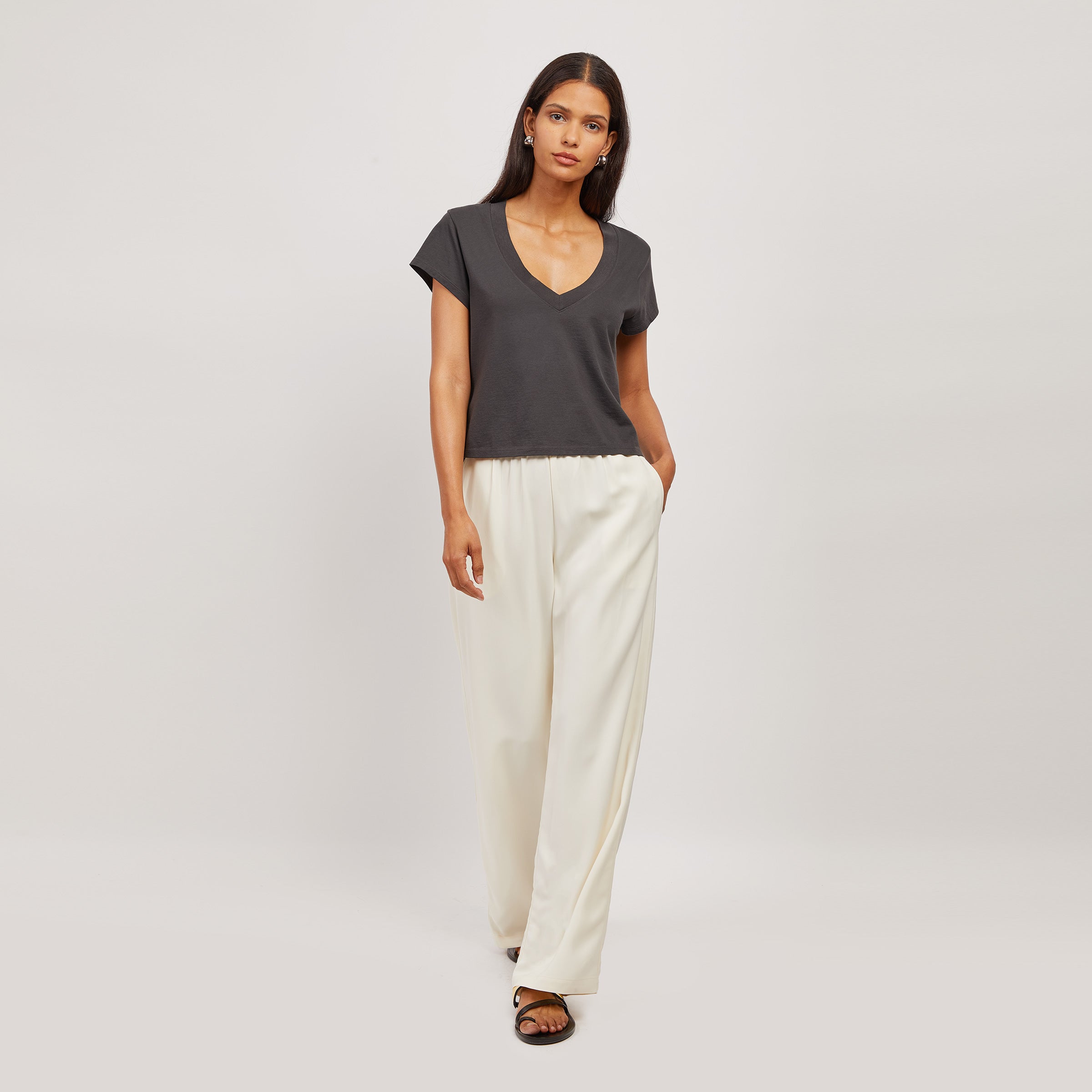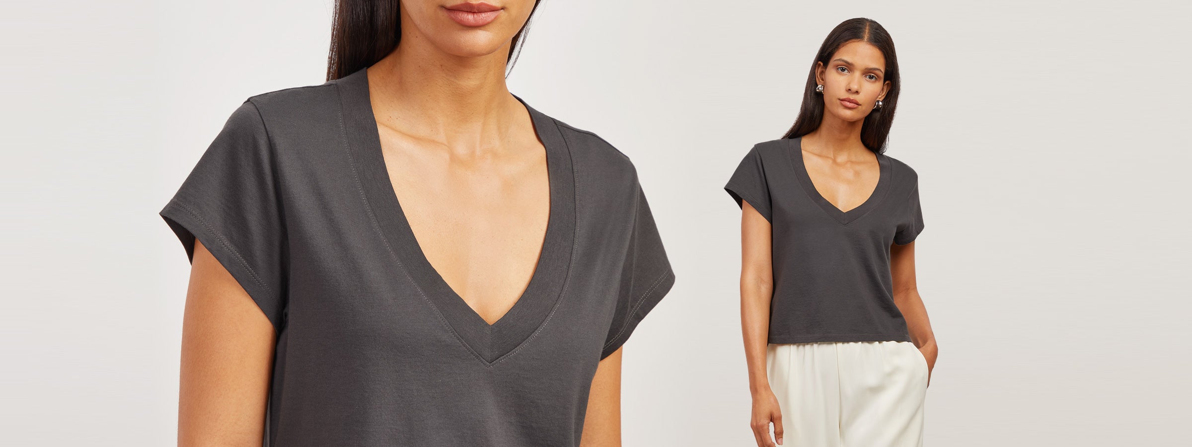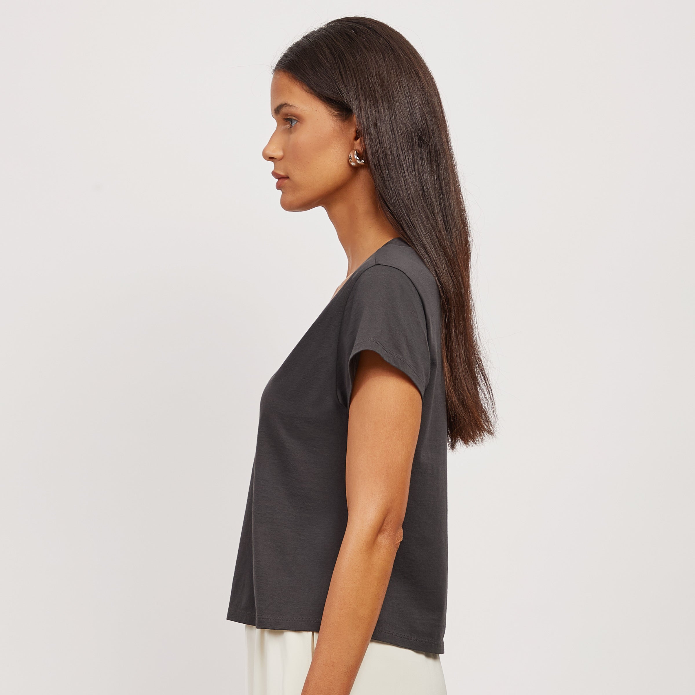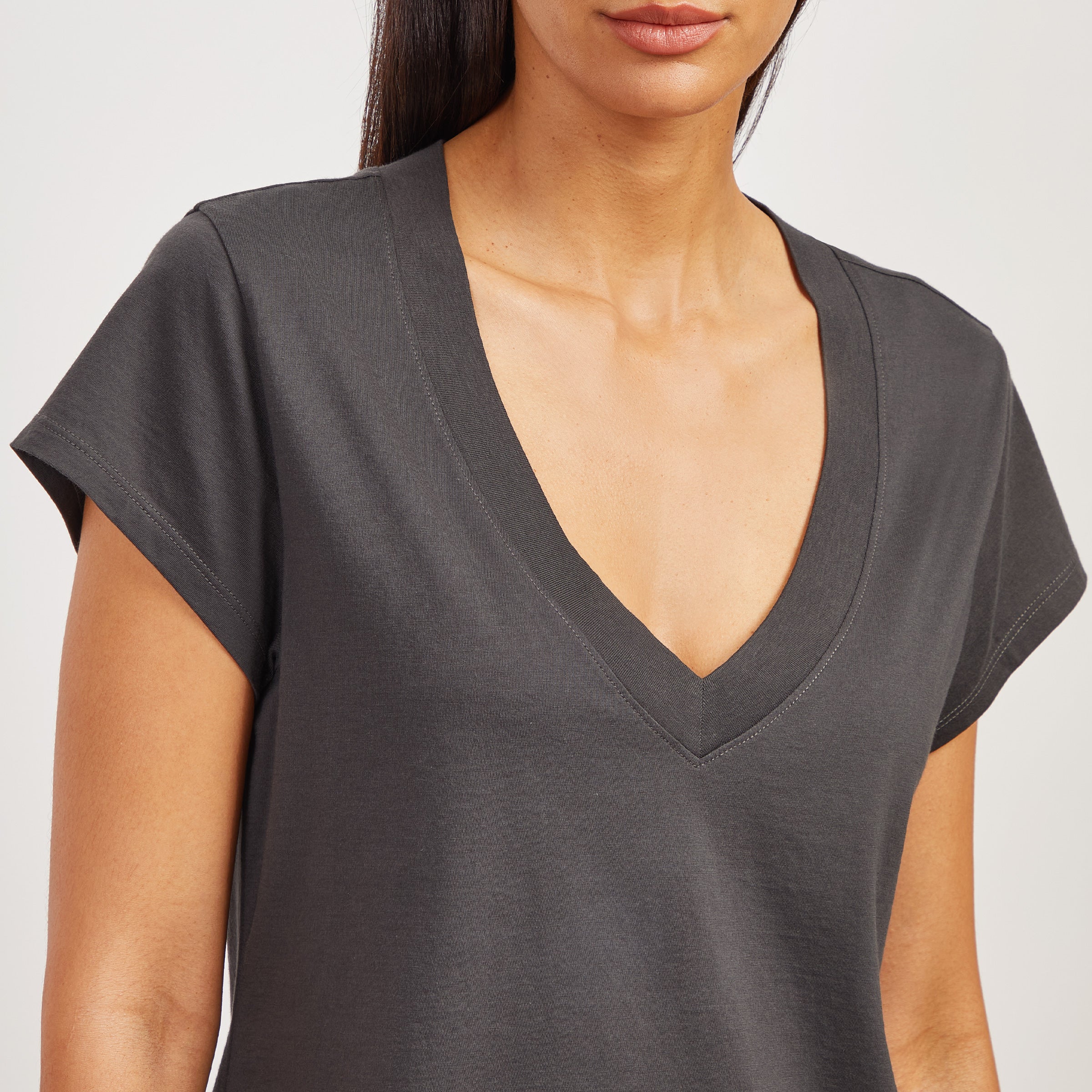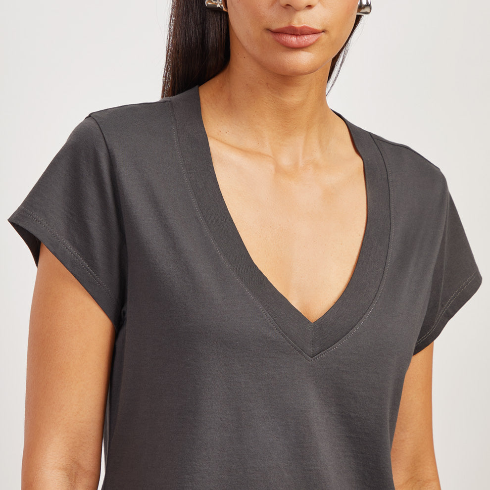 Cotton Boxy Deep V-Neck Tee