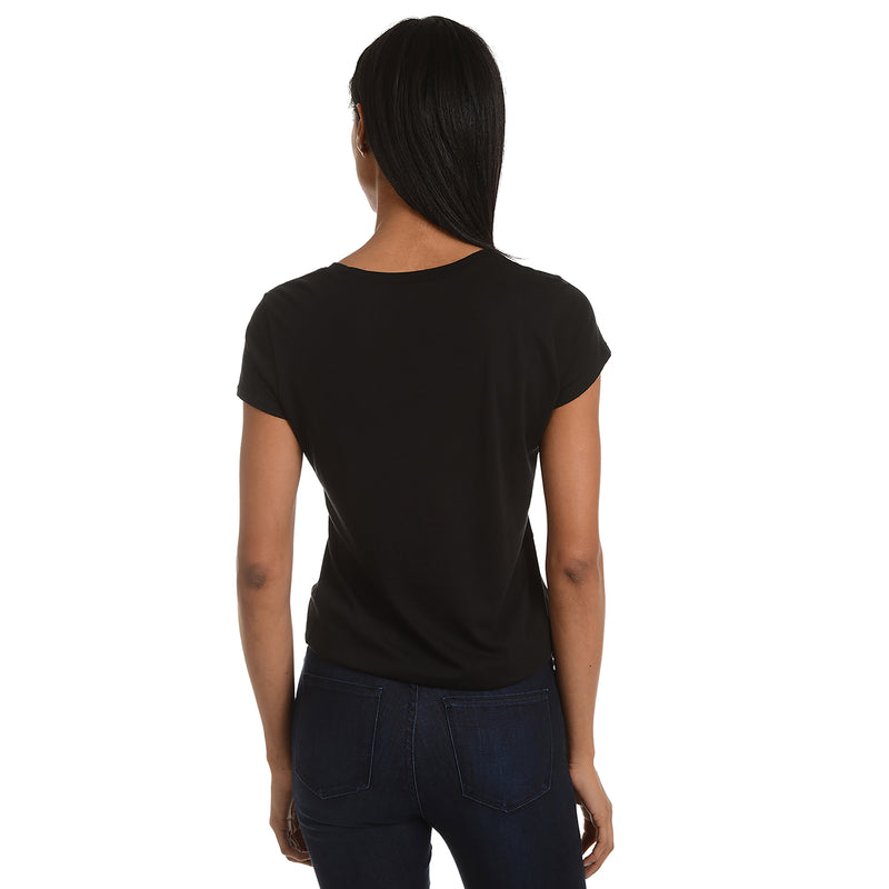 Chic by design: our dressiest tee, its beautiful sheen and curve-skimming fit are made to elevate any look.