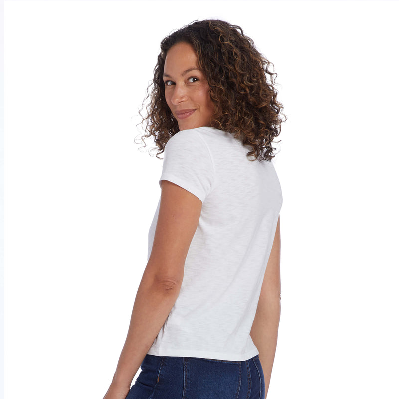 - The elevated, everyday tee every woman should have in her wardrobe. Crafted from 100% cotton slub jersey, this tee is luxuriously soft on the skin and looks beautiful on the body.