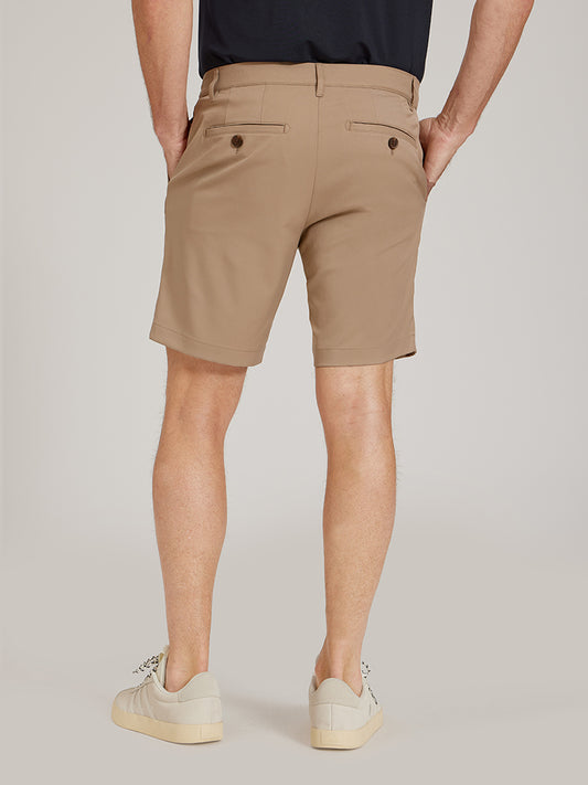 The ultimate blend of sophistication and comfort, inspired by our iconic Everywhere Chino pants. Made from premium twill fabric, these shorts offer a substantial, luxurious feel for a dressed-up look. The perfect amount of stretch ensures absolute comfort and ease of movement, whether you're walking, bending down, or enjoying any activity. Our chino shorts feature a continuous waistband for a seamless fit and back pockets with a button detail and tuckable flap. Ultra versatile, they can be dressed up for a dinner or dressed down for a casual stroll. These shorts for men redefine elegance and comfort, perfect for any occasion.