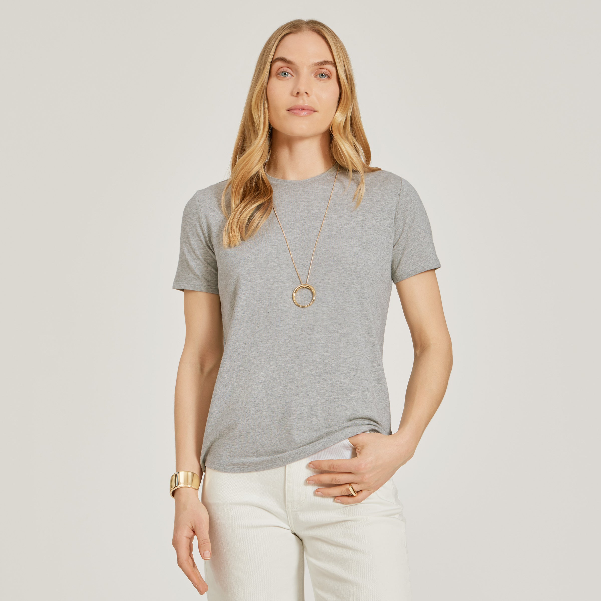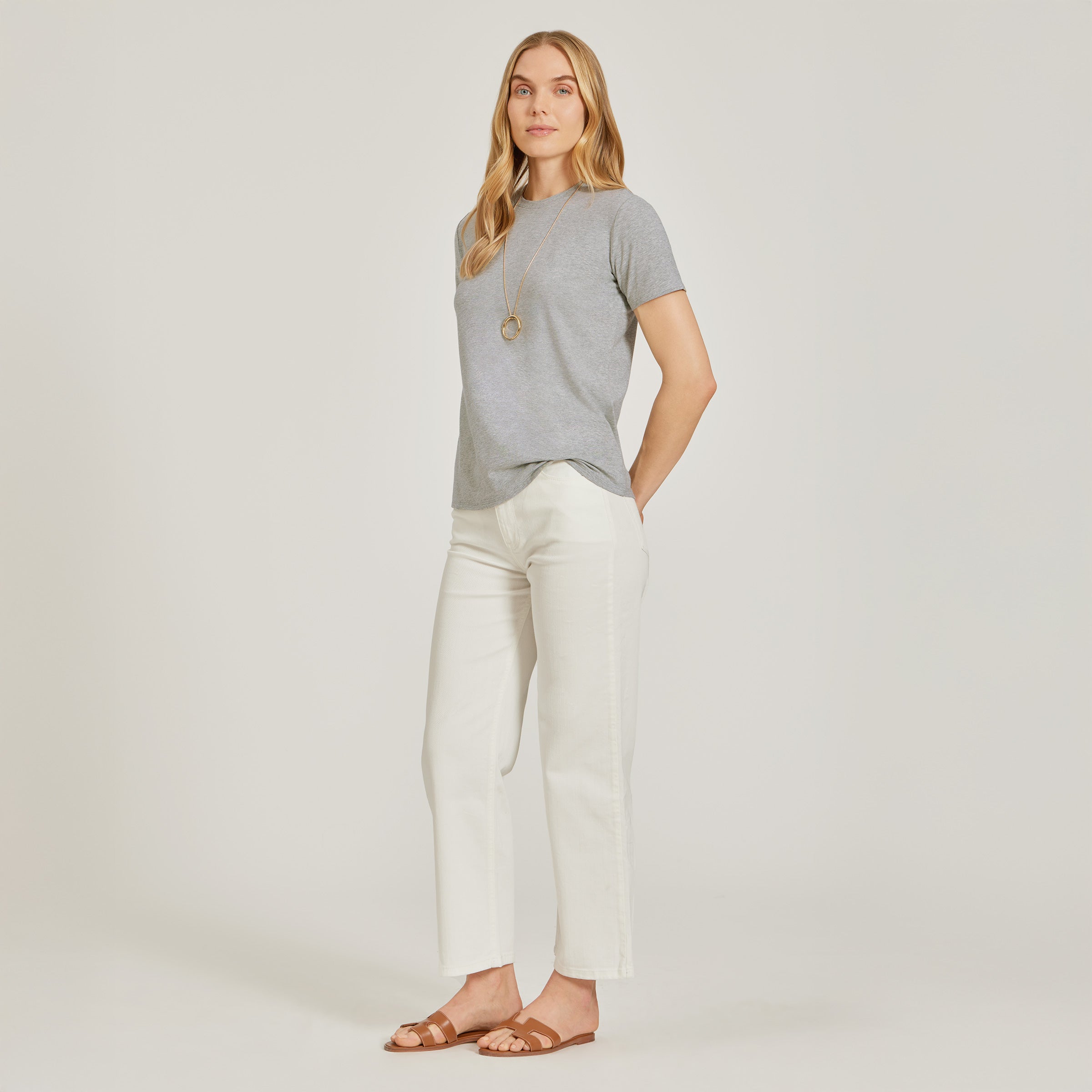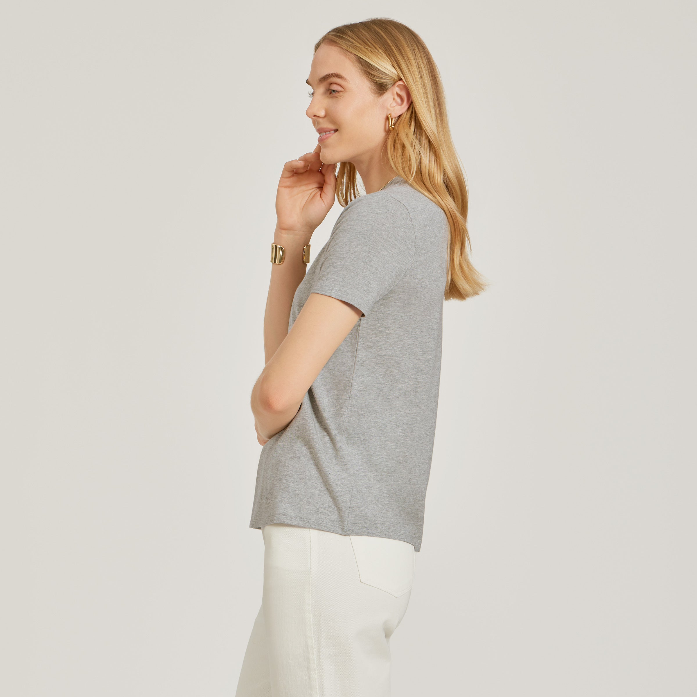 - Inspired by the Fitted Marcy, this version adds a little breathing room, making it the easiest tee to throw on and look put together in.