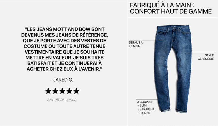 Avec plus de 30 ans d'expérience dans la fabrication de denim, Mott & Bow est fier d'offrir le meilleur jean de l'industrie au juste prix.