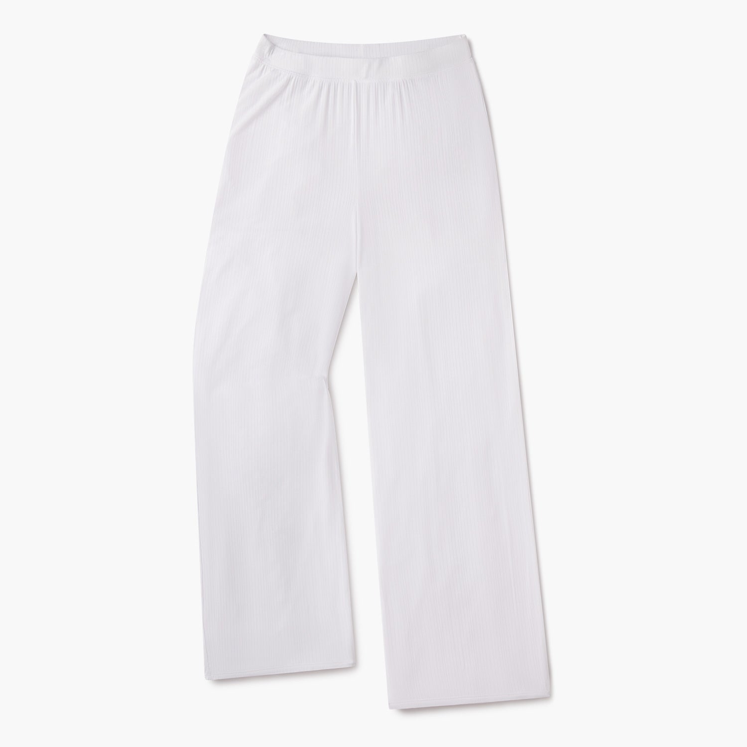 • Wide, straight leg with an easy, pull-on style and an elastic at the waist that won’t dig into your skin or leave imprints–only the feeling of true comfort.