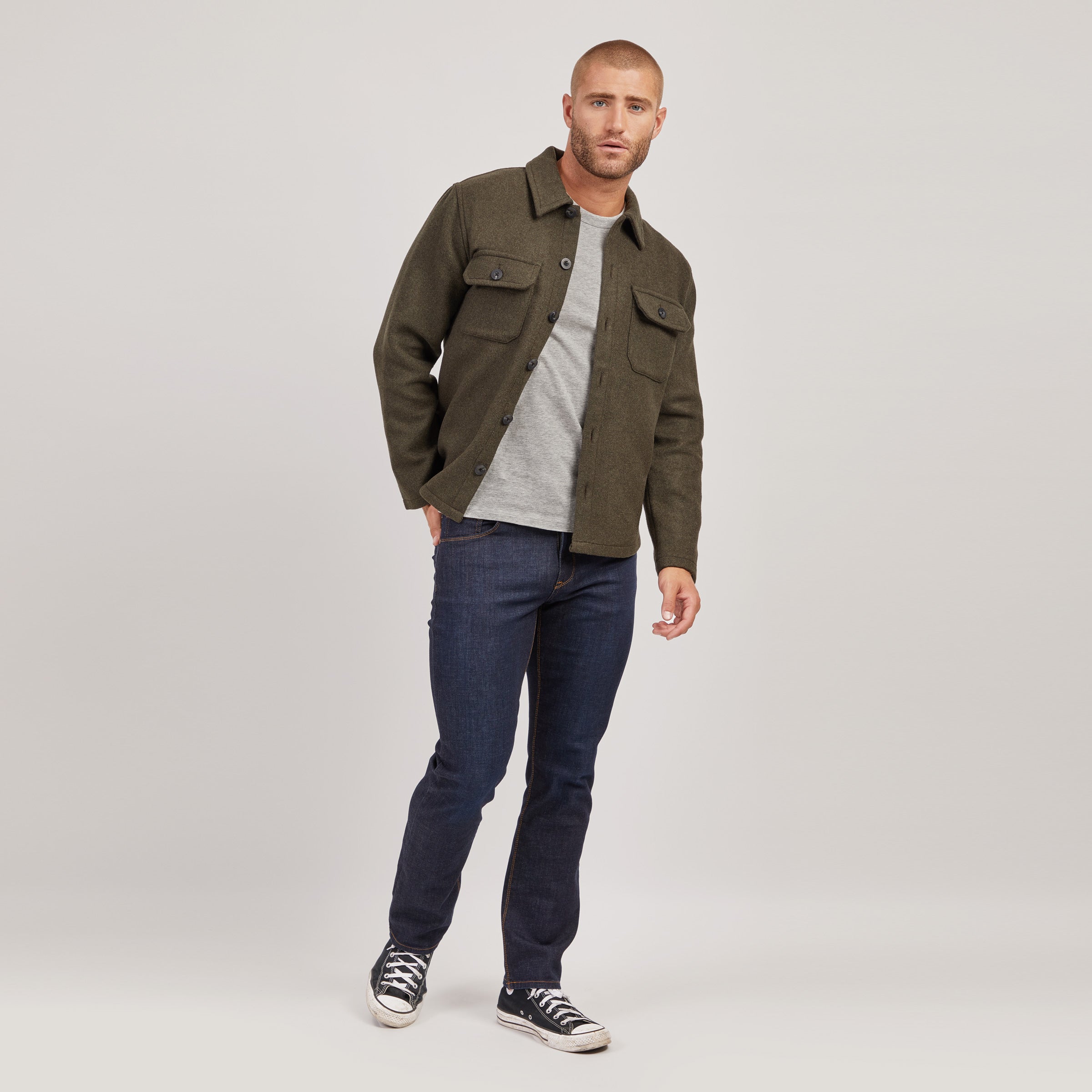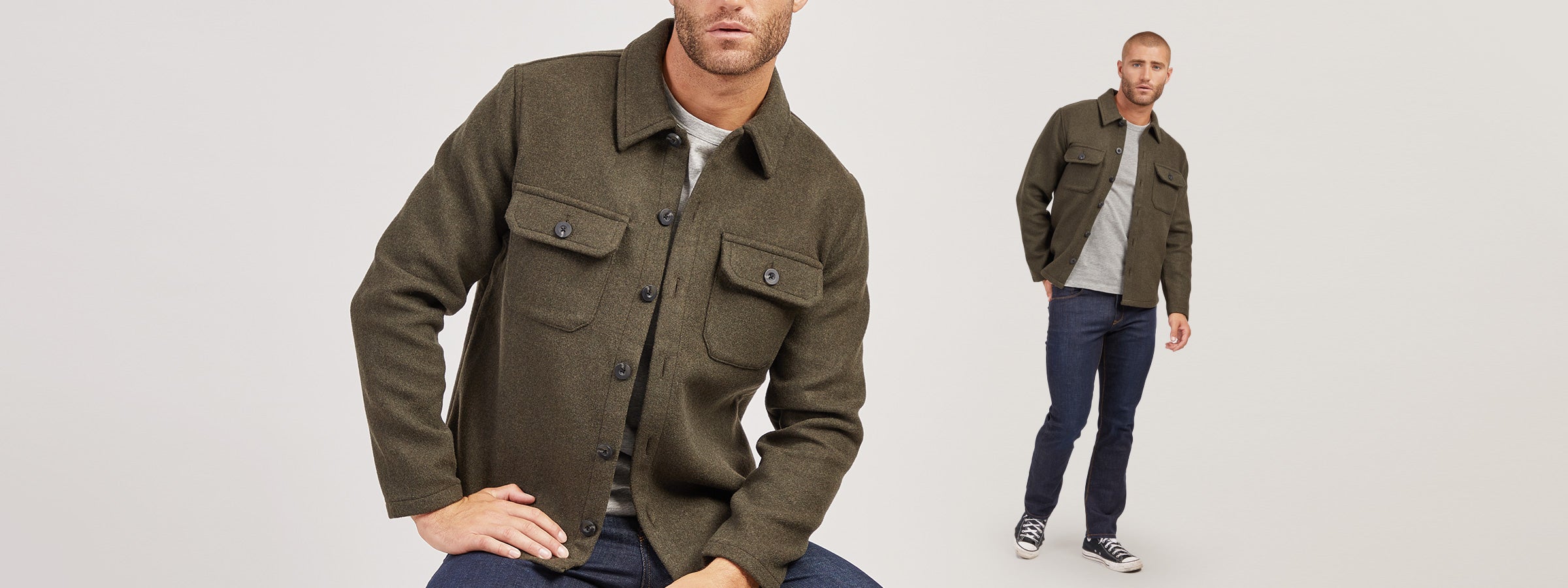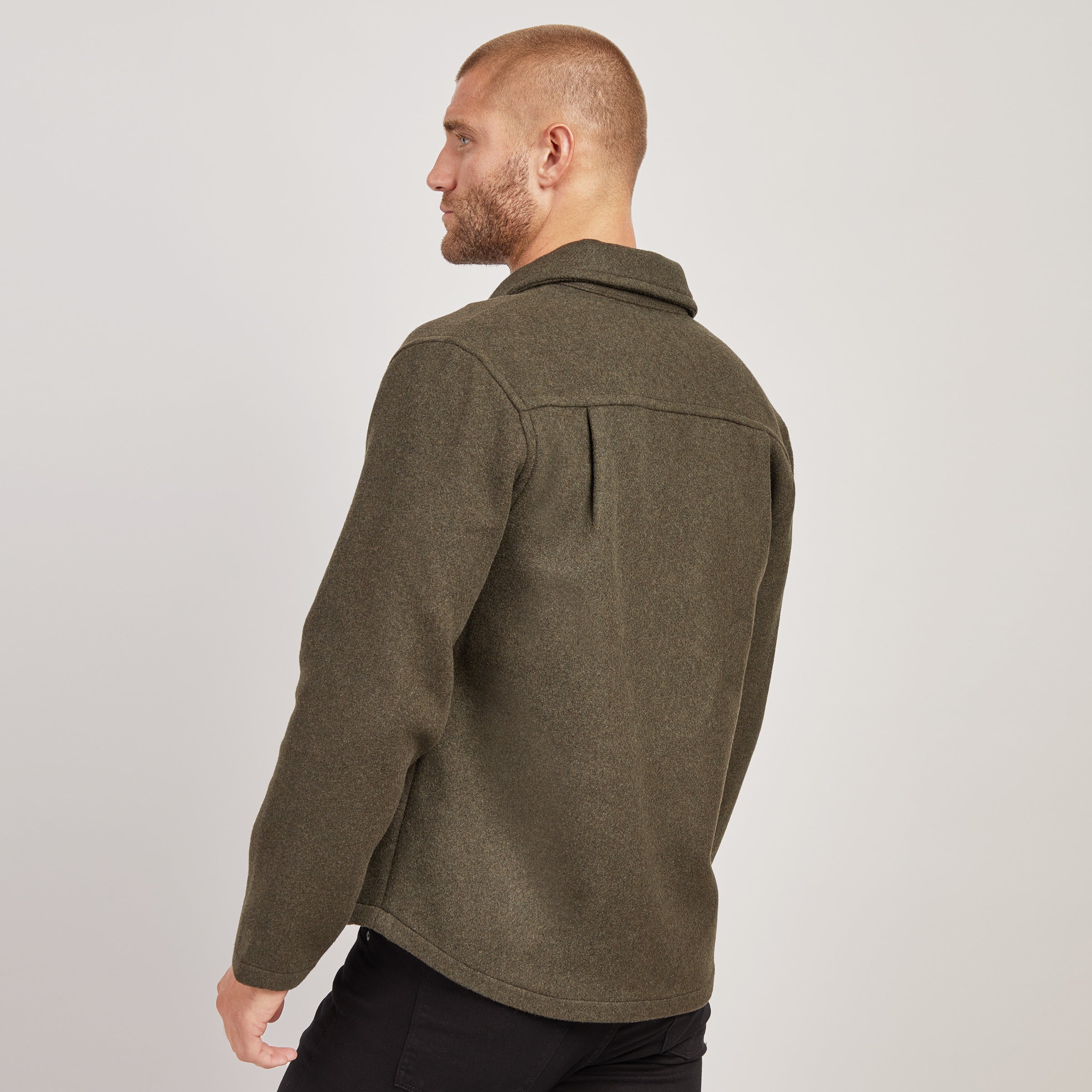 - Crafted with the finest, premium quality blended wool twill, this slightly oversized, high-end layering piece is ideal for the man looking to incorporate a tasteful sense of style into his transitional wardrobe.
