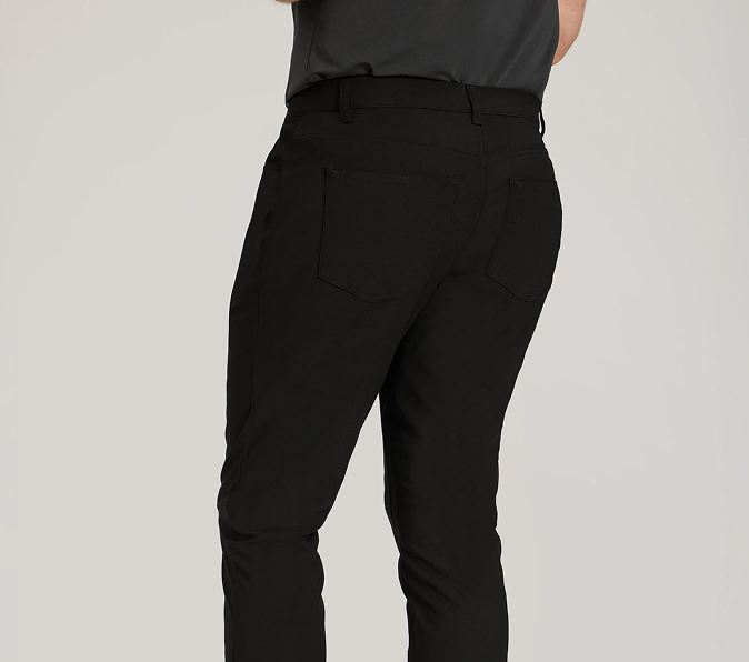 - Built with belt loops and a discreet elastic at the back waistband that provides up to an extra 1” for superior comfort—perfect for long flights, commuting, if in-between sizes or experiencing a little weight gain.