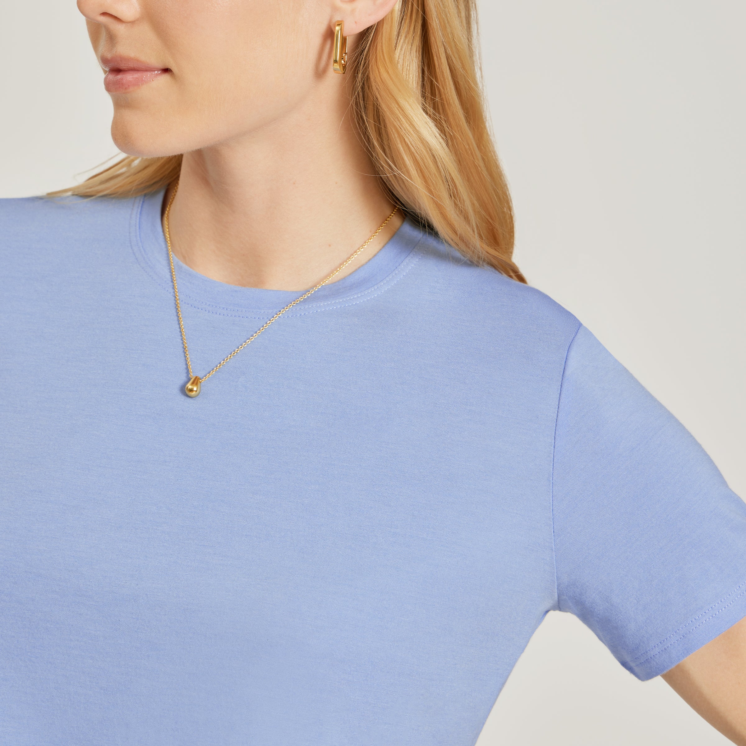 - Inspired by the Fitted Marcy, this version adds a little breathing room, making it the easiest tee to throw on and look put together in.