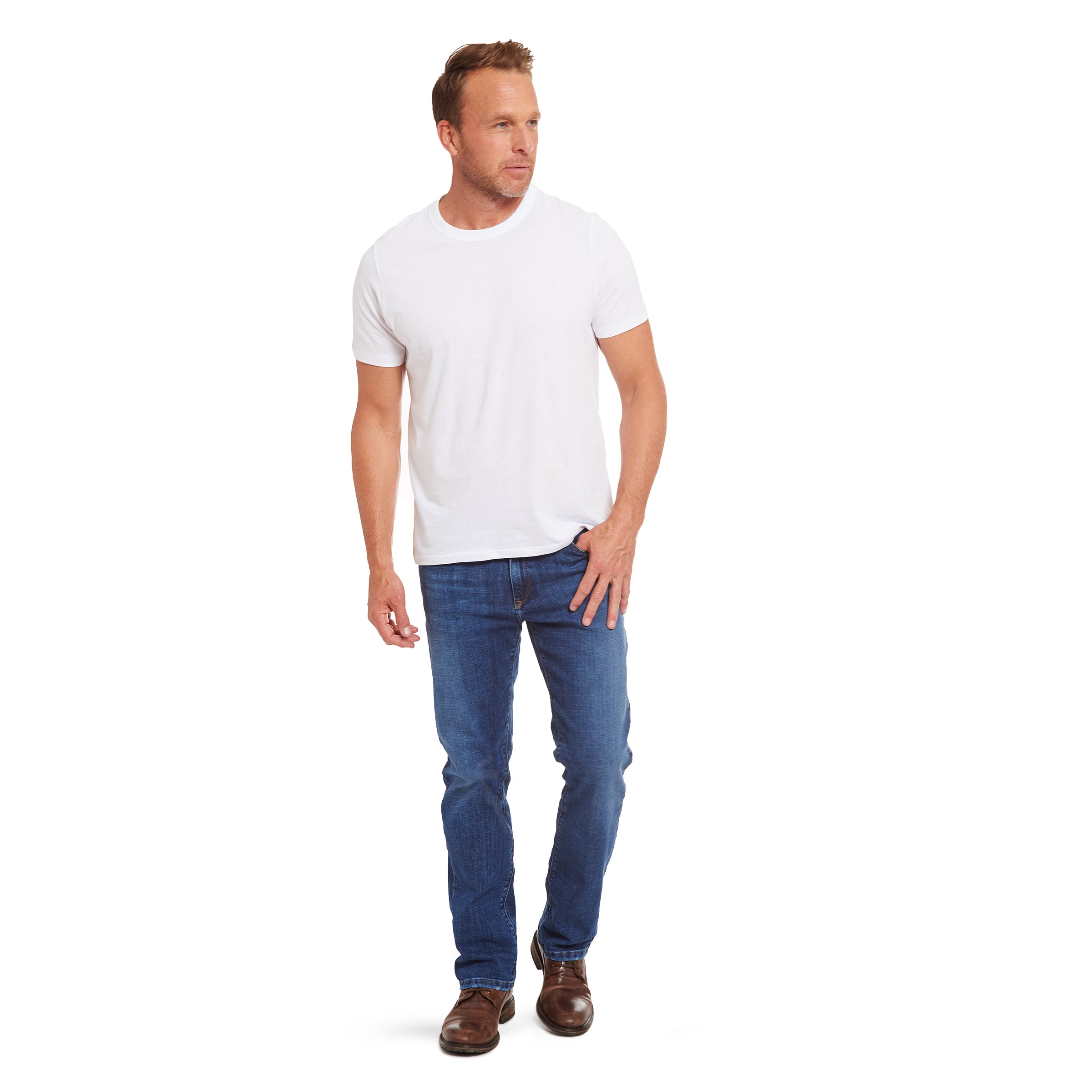 • A classic looser fit that's straight from hip to leg opening.